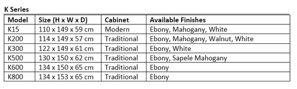 Please get in touch if there are other finishes, models, or sizes that you may be interested in. We may have them in stock or as a main UK dealer we are able to order these directly from Kawai. Any orders come to us direct before delivery to you and will still benefit from our skilled work and personalised service.