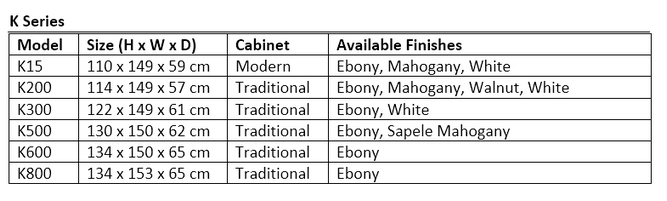 Please get in touch if there are other finishes, models, or sizes that you may be interested in. We may have them in stock or as a main UK dealer we are able to order these directly from Kawai. Any orders come to us direct before delivery to you and will still benefit from our skilled work and personalised service.