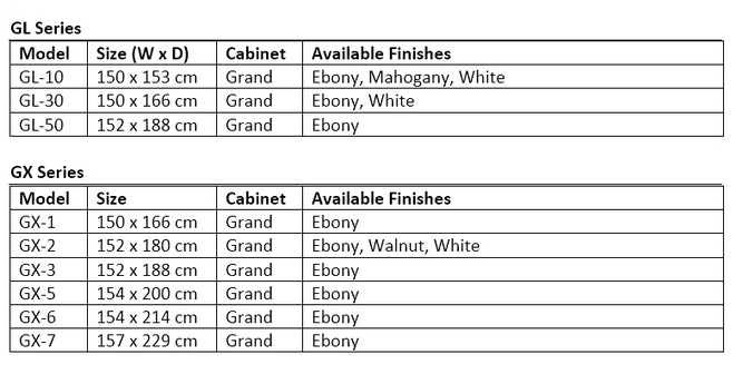 The Kawai range does also extend beyond the above models and includes a concert grand piano series the EX and the hand-